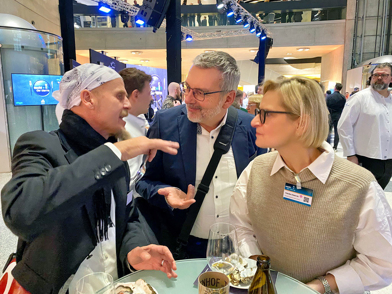 Am nächsten Morgen zeigte sich, dass die Nacht der Sterne auch leise Töne beherrscht. Beim traditionellen „Katerfrühstück“ by Transgourmet Cook auf der Intergastra ging es um Ankommen, Durchatmen und Weiterdenken. Champagner, Austern, Rollmops, frisch geschnittener Serrano-Schinken und kleine Flying Dishes sorgten für einen genussvollen Start in den Messetag. Zwischen Kaffeetasse und Champagnerglas entstanden Gespräche, die oft genauso wertvoll waren wie die des Vorabends.